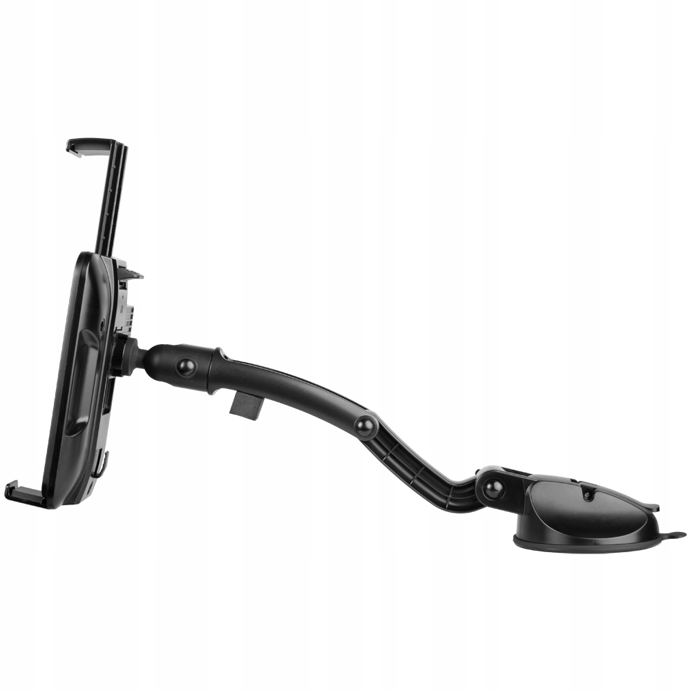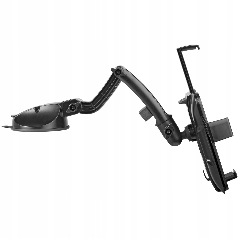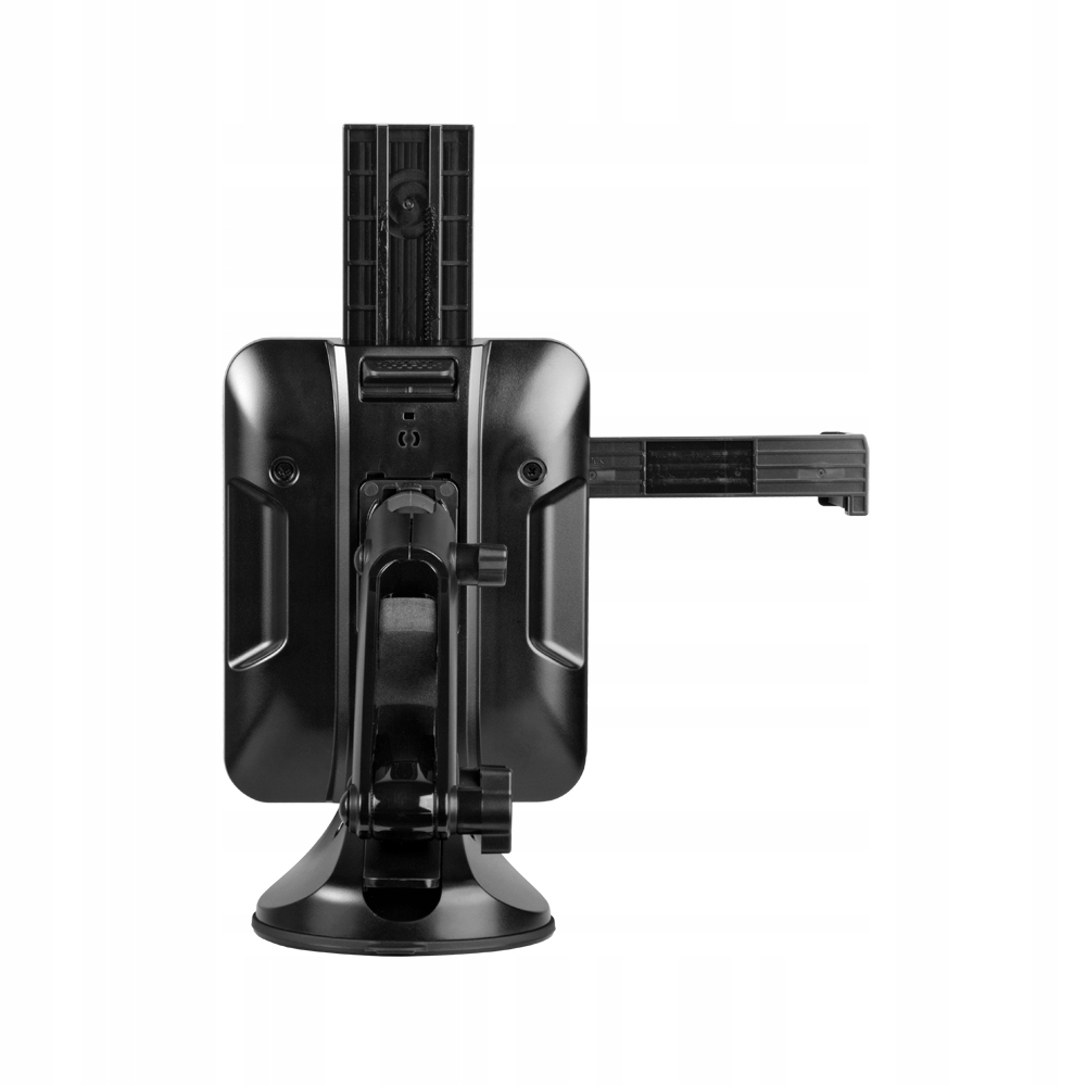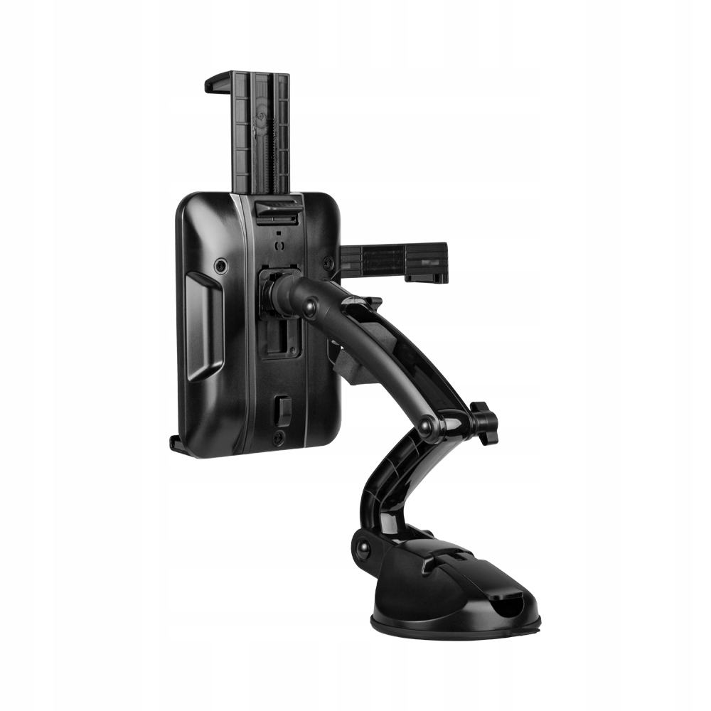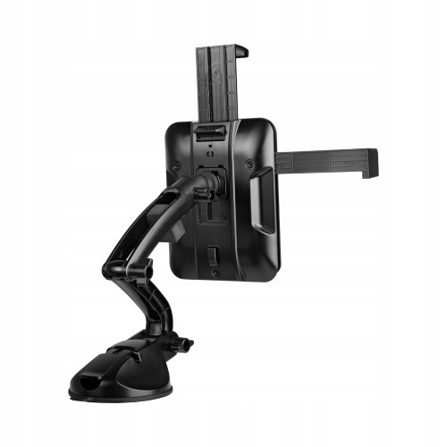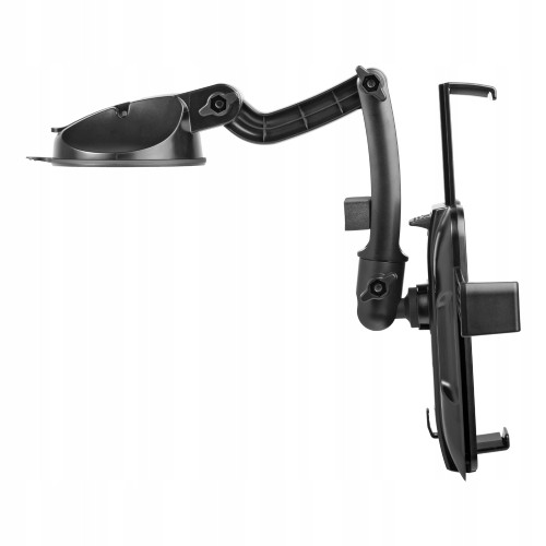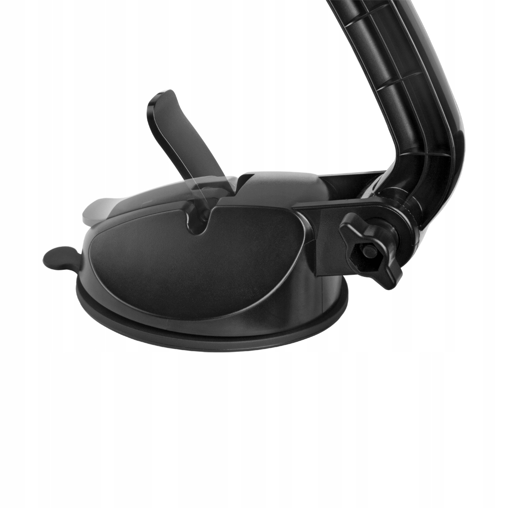 Uchwyt samochodowy przeznaczony do montażu urządzeń typu smartfon/tablet napłaskich powierzchniach ze szkła oraz tworzywa sztucznego.